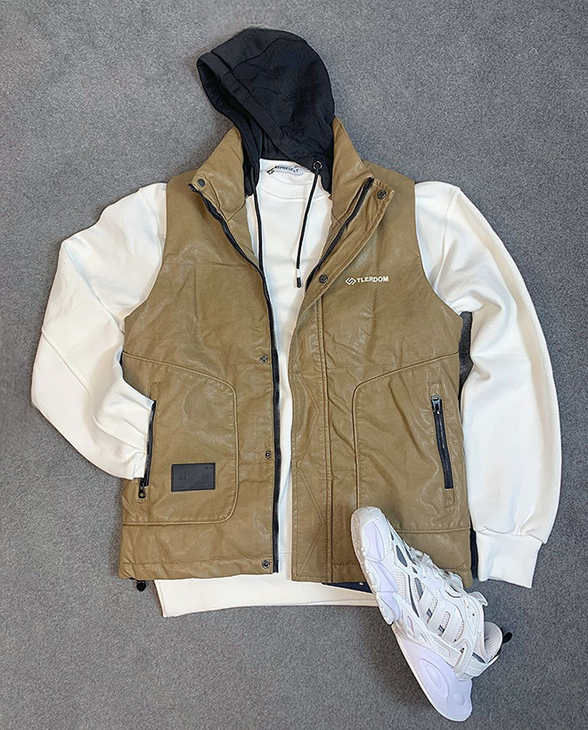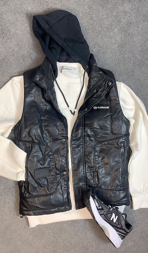 پافر وارداتی جنس چرم رنگبندی مشکی و کِرِم