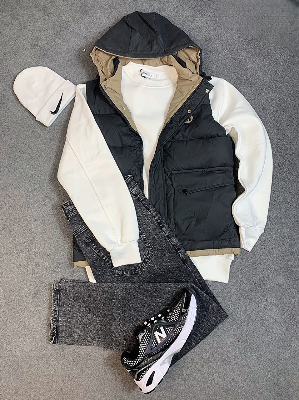 کاپشن پافرشو وارداتی رنگبندی سفید و مشکی